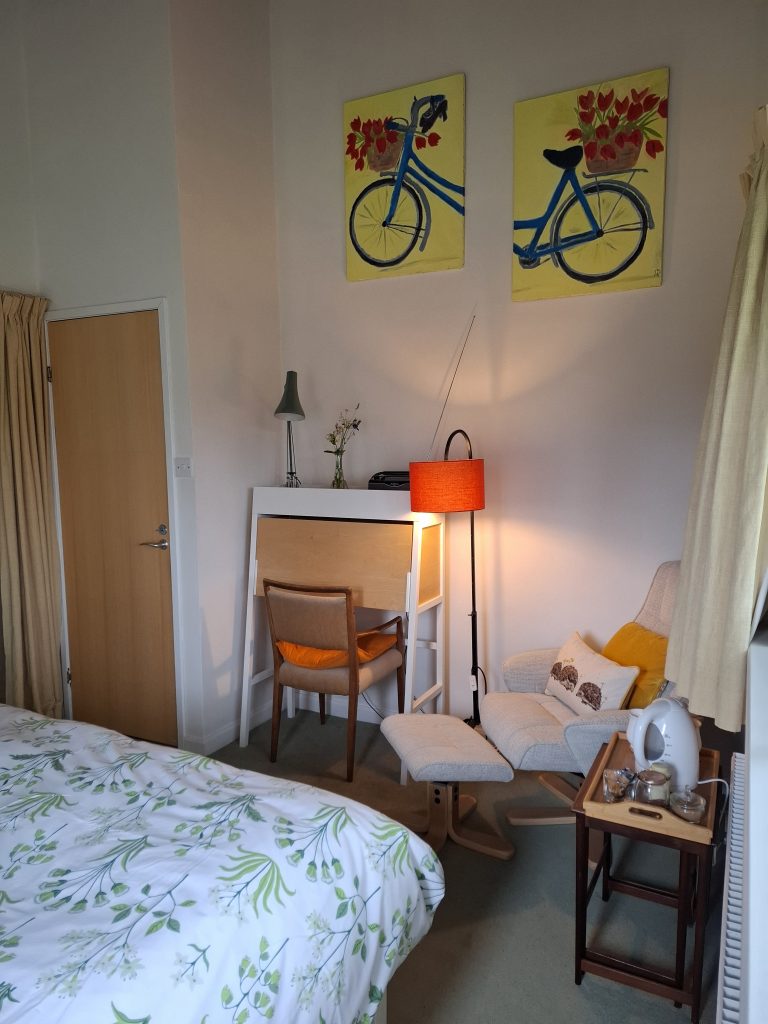 Our accommodation comprises two comfortable king-sized rooms, with a kettle, beverage and biscuit tray, seating, a desk area and ample storage space in each room.